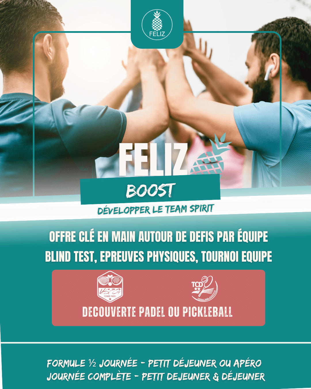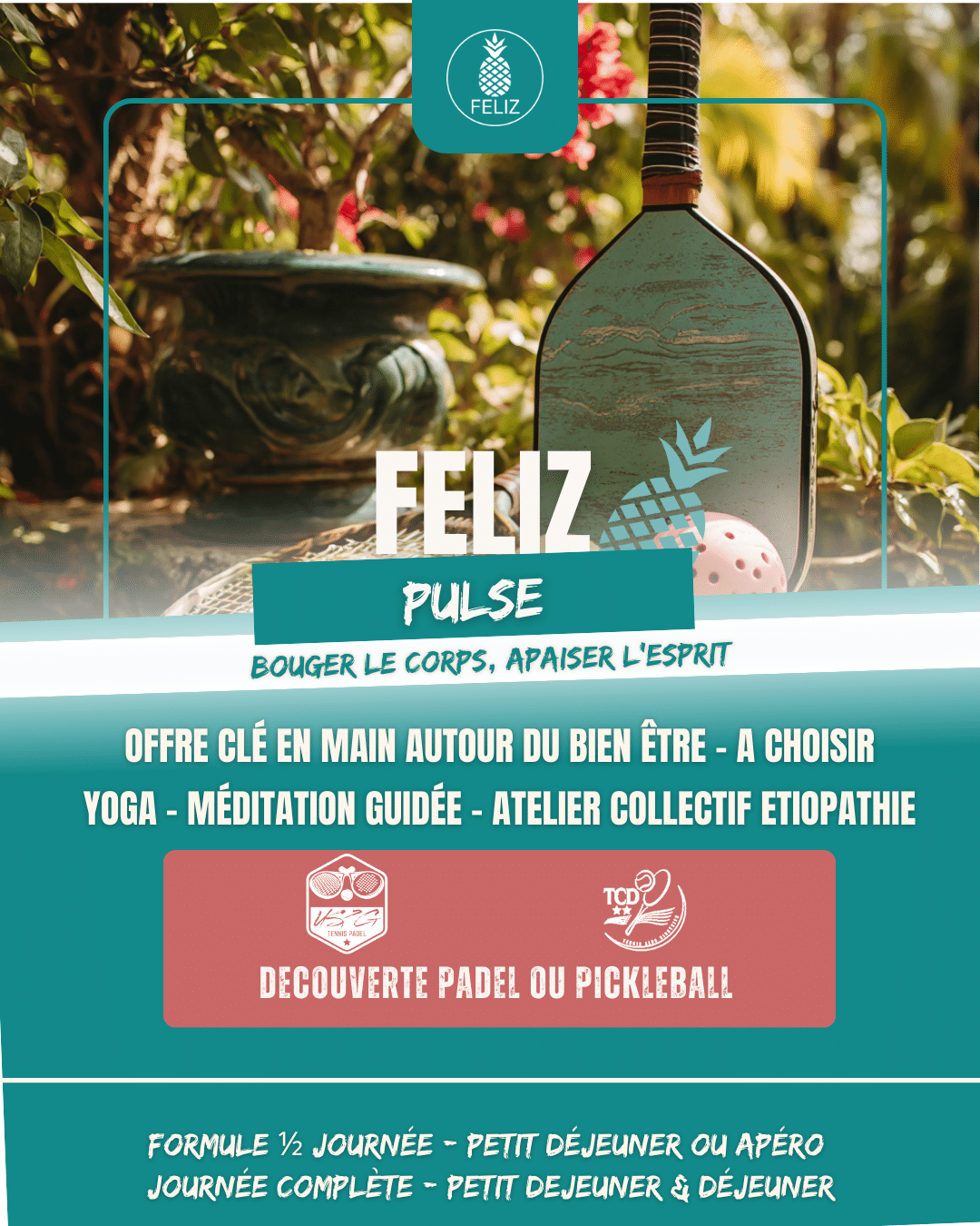 🍍 FELIZ est un spécialiste des sports de raquettes qui organise avec nos partenaires, des événements sportifs dans un cadre remarquable, verdoyant & calme 🍍